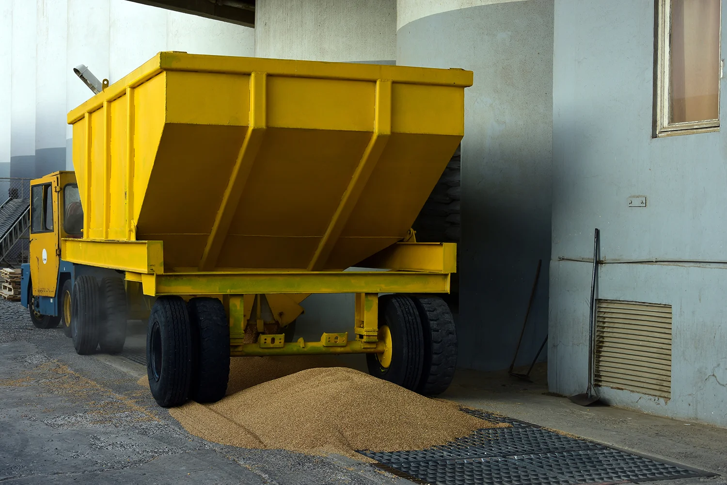 O processo de descarga do trigo a granel tem início com a chegada do navio que o transporta ao porto marítimo, neste caso, o Porto Grande em Mindelo – S. Vicente. Depois seguem-se os procedimentos aduaneiros, iniciando-se a descarga através da utilização de garras e vagões que transportam o trigo para os silos de recepção. Após a recepção, o trigo passa por processos de limpeza para retirar impurezas grossas, poeiras e outros, culminando com o respectivo armazenamento nos silos da MOAVE.